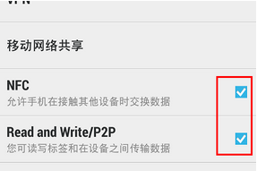 3、勾選NFC功能的復選框按鈕即可,并允許讀寫標簽和在設備之間傳輸數據。這樣您便完成了手機的NFC功能開啟操作,不同的手機打開該功能的方法不盡相同,一般在“無線和網絡”界面下可以設置NFC功能。